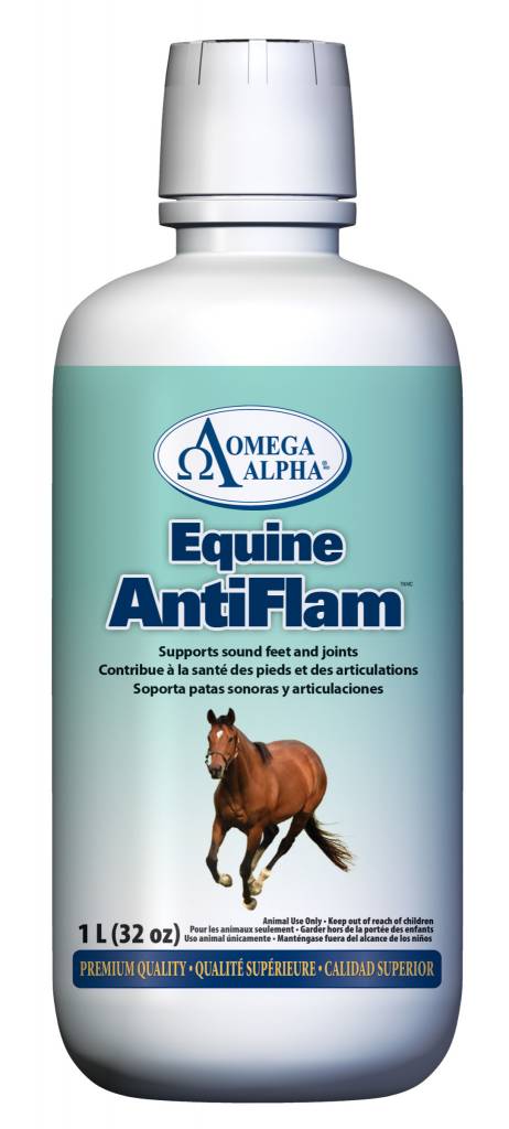 Omega Alpha Equine AntiFlam uses all-natural ingredients to provide relief from joint pain and body aches in horses. This treatment is perfect for back aches, joint pain, sore legs and hooves, and inflammation. It also works to repair damaged tissue, to strengthen capillaries, and to reduce swelling in ligaments and joints and prevent any future swelling that might affect them.