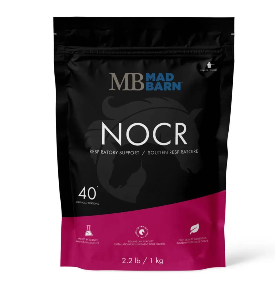 NOCR is an all-natural respiratory supplement formulated to help horses breathe easily and perform at their best. Its antioxidant-rich herbal blend supports healthy lung function and efficient oxygen use, allowing your horse to maintain stamina and peak performance during training and competition.