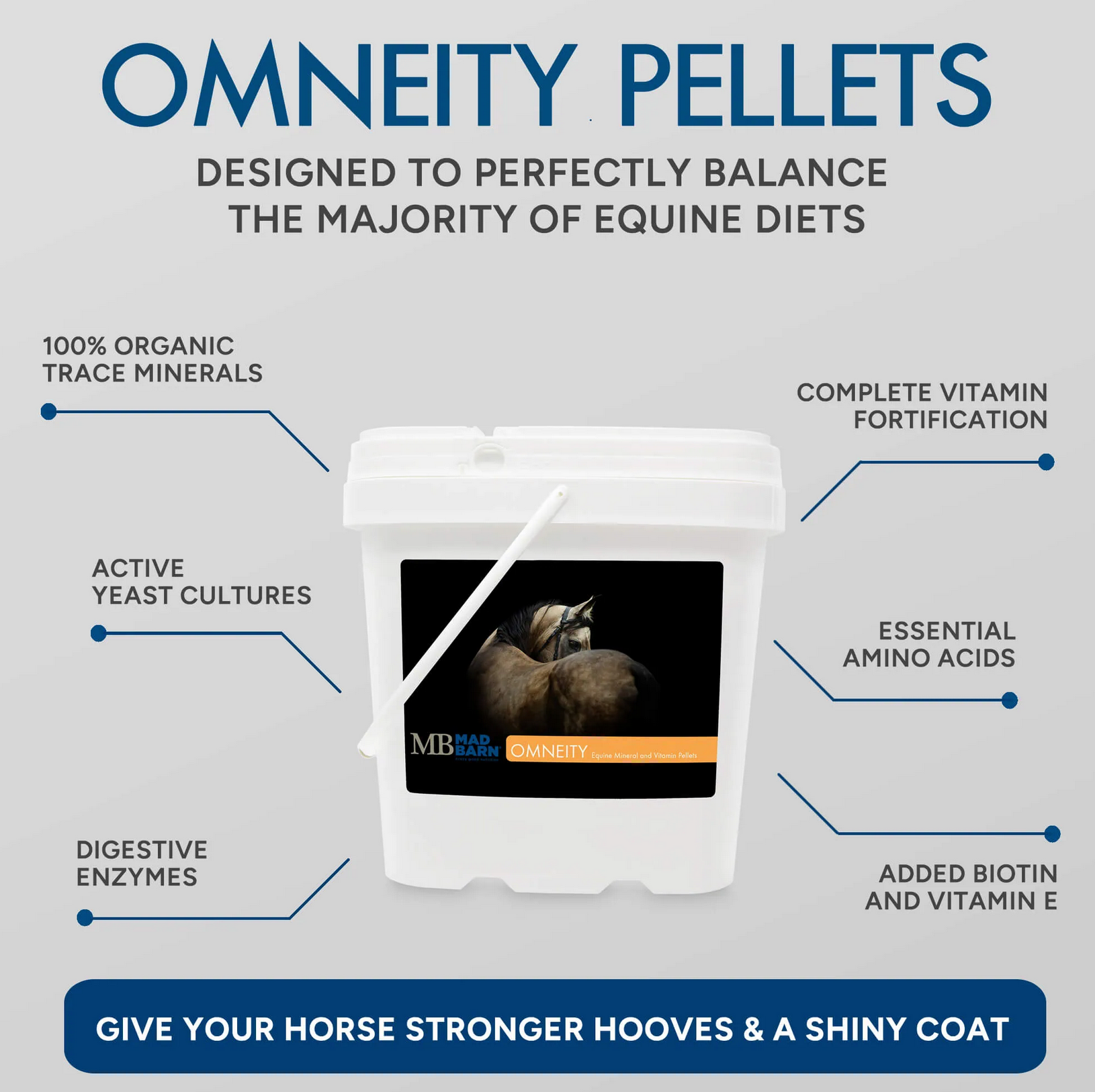 Mad Barn’s Omneity P is a feed balancer pellet designed to provide every horse with optimum, balanced nutrition – naturally.