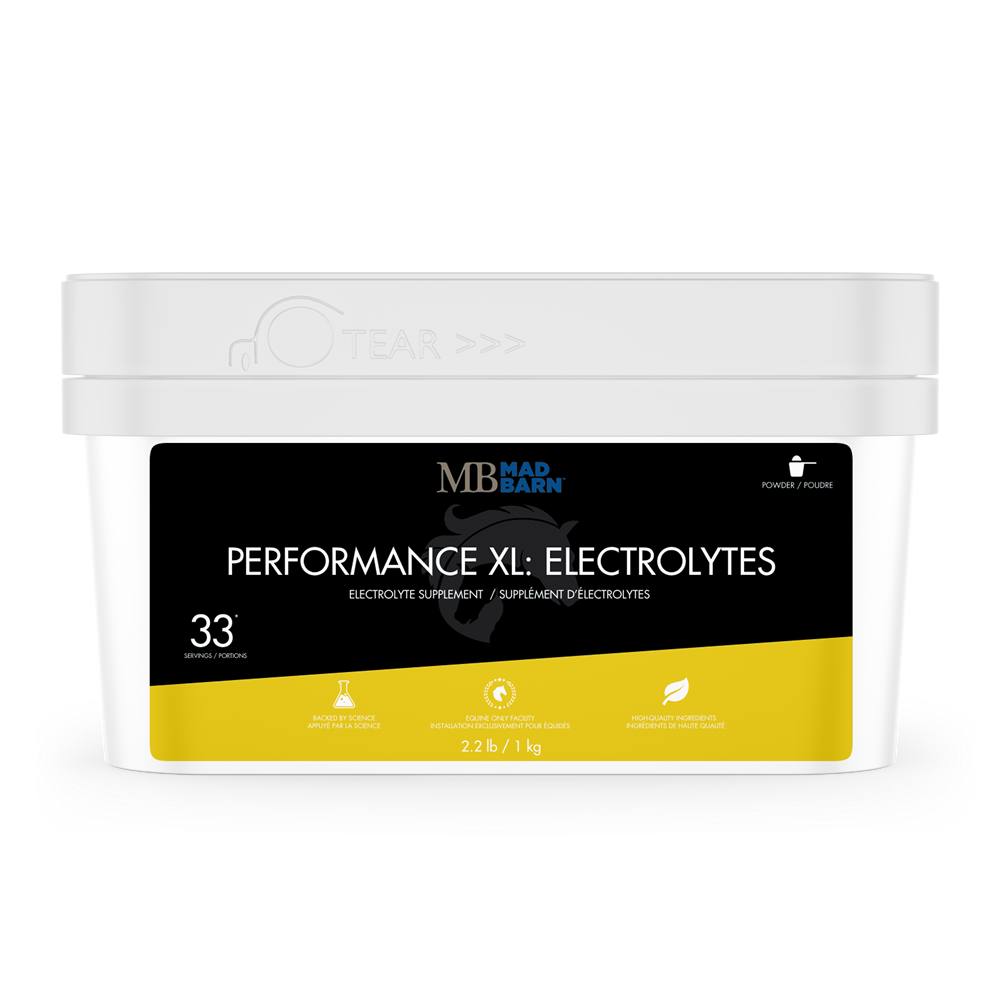Mad Barn’s Performance XL: Electrolytes has been scientifically formulated to replace exactly what the horse loses through sweat during heat stress or strenuous exercise.