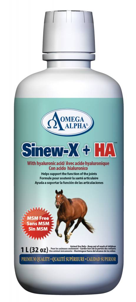 Omega Alpha Sinew-X aids joint recovery and muscle soreness in horses and works to prevent soreness in the future. In addition to its pain relief, this formulation also works to reduce swelling and strenghten your horse's capillaries. D-Glucosamine Sulfate and MSM work to improve joint function, with the former providing raw material for ligaments and cartilage and the second providing a valuable source of sulfur.
